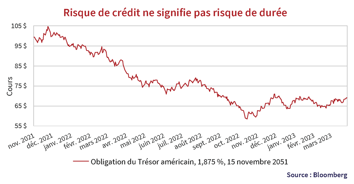 L’obligation du Trésor américain à coupon de 1,875 % échéant le 15 novembre 2051 a clôturé le dernier trimestre au prix de « 68-10 », pour un rendement de 3,7 %. Pour les profanes qui ne négocient pas fréquemment des bons du Trésor, il faut savoir que la convention d’établissement des prix pour les bons et les obligations du Trésor se fait selon une échelle de cotation « en 32 », avec des échelons (ticks) correspondant à un 32e de 1 %. Autrement dit, le prix de cette obligation était de 68-10/32, « 68 et 10 ticks » ou simplement 68,31 $.