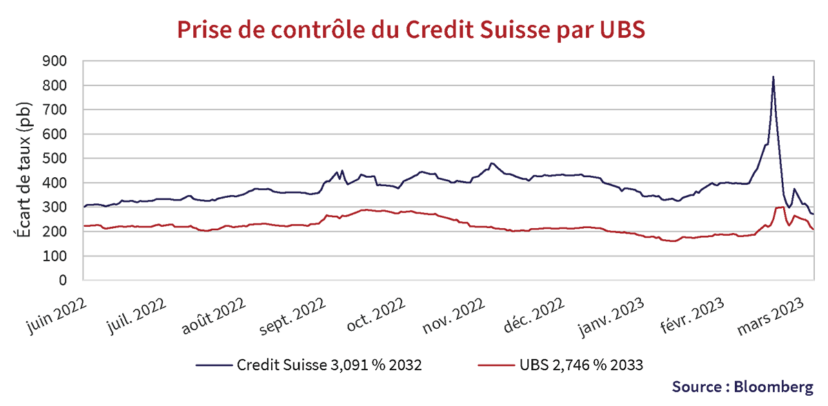 La semaine suivante, la crise de confiance s’étendait outre-Atlantique. Le 19 mars, sous l’œil vigilant des organismes de réglementation mondiaux, UBS Group AG annonçait le rachat de Credit Suisse, son rival en difficulté.