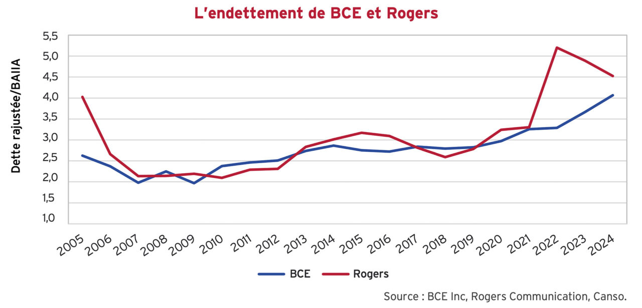 Le traitement à parts égales est intéressant, car ces sociétés s’efforcent de contenir leurs ratios d’endettement dans un secteur où la concurrence s’intensifie et où la croissance ralentit. Les difficultés de Bell sont dues à des dépenses d’investissement élevées et au versement d’un dividende important auquel la direction reste attachée. De plus, la société a fait un pari ambitieux sur le marché américain en novembre dernier avec son acquisition, pour 7 milliards de dollars canadiens, de Ziply Fiber, un fournisseur d’accès Internet de Washington.