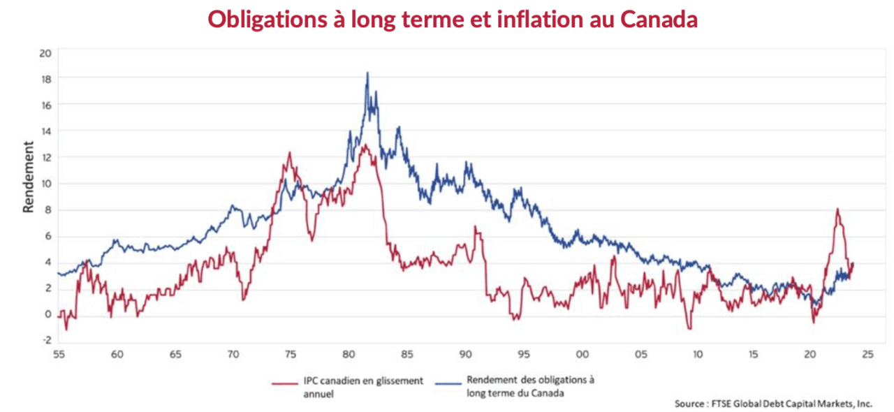 Au cours de la période de politique monétaire moderne commencée en 1955, année où l’inflation survenue après la Seconde Guerre mondiale a été maîtrisée, le Canada n’a connu que deux périodes au cours desquelles l’inflation a été supérieure au rendement à long terme des obligations du Canada.